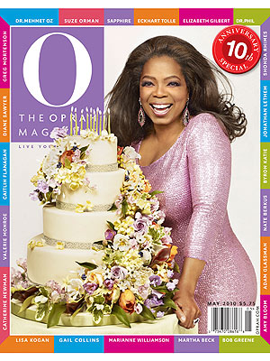 Why celebrate your birthday by just blowing out a candle when you can have a blow-out magazine cover? Oprah Winfrey will fête the ten-year anniversary of her eponymous magazine with a special cover featuring the star in a glittering custom gown designed by Isaac Mizrahi. Shot by photographer Ruven Afanador, the cover of O, the Oprah Magazine‘s 10th anniversary issue in May features the media mogul posing with a towering, flower-bedecked cake, dressed in a sequined lilac dress with three-quarter sleeves that is a re-imagining of a spring 2010 Mizrahi look just for her. “I wanted Oprah’s look to radiate celebration,” says O creative director Adam Glassman, who collaborated with the designer on Oprah’s cover look. While the daytime talk show empress has announced the end of her show in 2011, fans will be pleased to know that the shoot ended with a toast from Oprah, proclaiming, “Here’s to the next ten years!” To celebrate the 10th anniversary of O, The Oprah Magazine with Oprah herself and her pals during their N.Y.C. celebration weekend, visit www.oprah.com/oturns10 for info and limited tickets, and pick up a copy of the magazine when it hits newsstands on April 13th. — Marissa Patlingrao Cooley