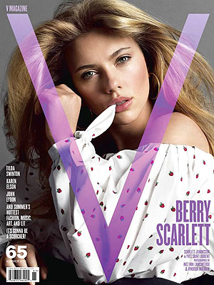 Never mind her enviable bone structure, pouty lips and voluminous hair–or the weeks of hardcore training she endured to get in shape for her role as a catsuit-clad spy in Iron Man 2—Scarlett Johansson chalks up her famous good looks to her glam squad. “Working with these incredible hair and makeup teams, you go in looking like a schmoe, and you come out like a movie star,” V magazine‘s June cover star says. The 25-year-old actress, who despite a busy schedule lighting up the Broadway stage and the big screen has found time to appear in campaigns for Dolce & Gabbana Beauty, Louis Vuitton, L’Oreal and Mango, says, “You go through the works, and then you’re like this perfectly prepared sausage…no one ever sees what goes in.” Sorry, Scarlett, while we don’t doubt the talent of your stylists and makeup artists, we’d hardly compare you to a link of kielbasa! For the full interview, pick up the June issue of V magazine, on newsstands May 11. –Marissa Patlingrao Cooley